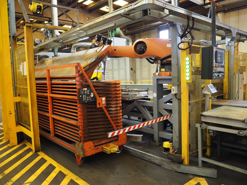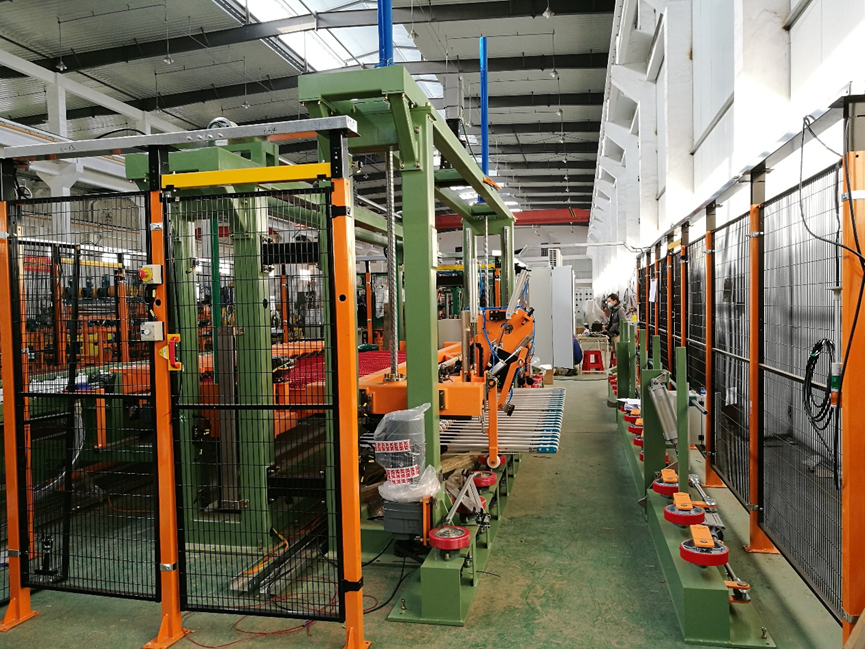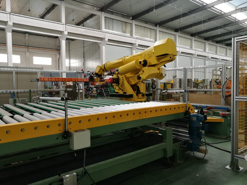 机器人式自动拾取系统用于从挤出生产线拾取胎面或胎侧,并直接将其放入百叶车中。该系统包括百叶车自动进出装置、百叶车自动翻页装置、拾取输送辊道以及带夹紧工具的机器人等。此系统是全自动的,且基于配方运行。与其他类型的自动拾取系统相比,它占用的空间更小。机器人式自动拾取系统可根据要求进行定制。