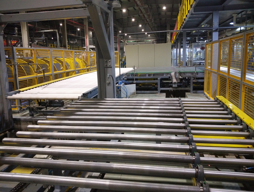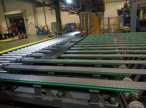 输送式自动拾取系统用于将胎面或胎侧从挤出生产线输送出来并直接放入百叶车中。该系统包括百叶车自动进出装置、百叶车自动翻页装置、拾取输送机、抓取放置机械手、储料输送机以及卸料机械手等。此系统为全自动且基于配方运行。输送式自动拾取系统可根据需求进行定制。